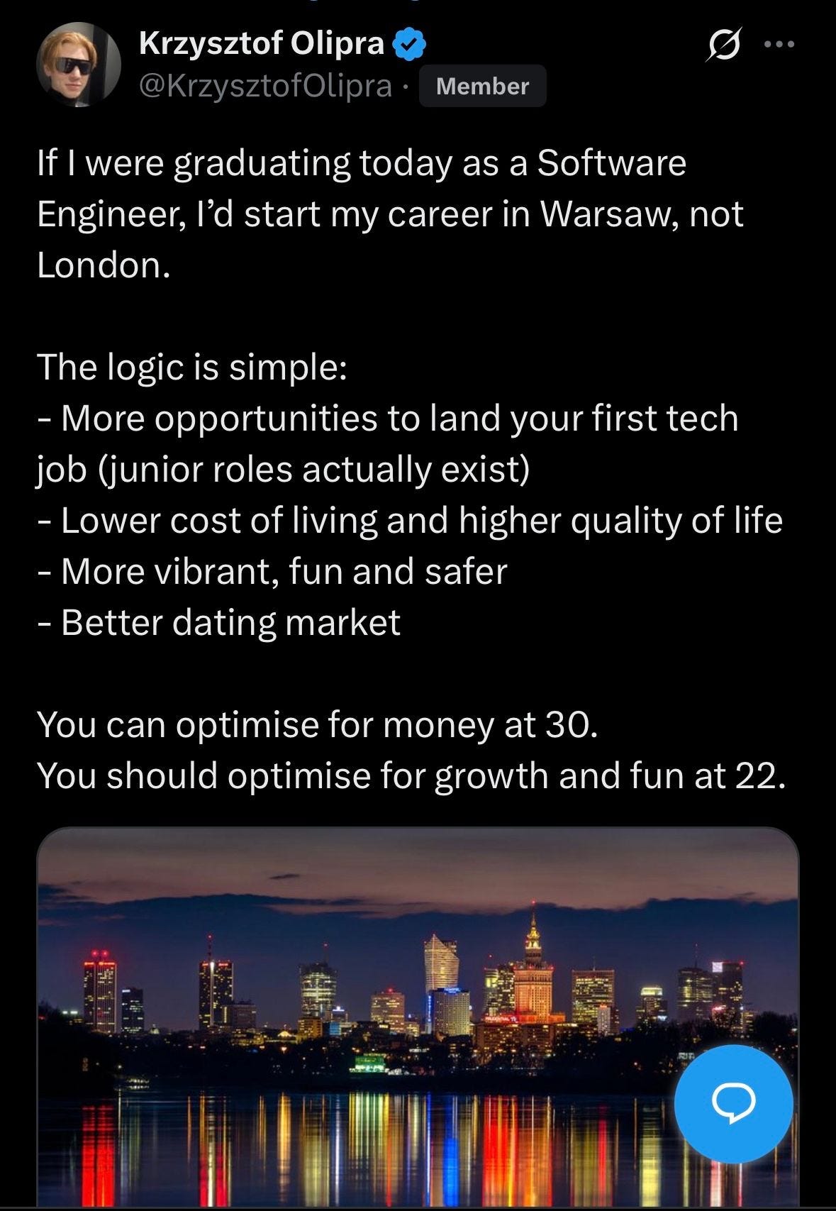 And I think landing a big tech offer in Warsaw is way easier than in London.