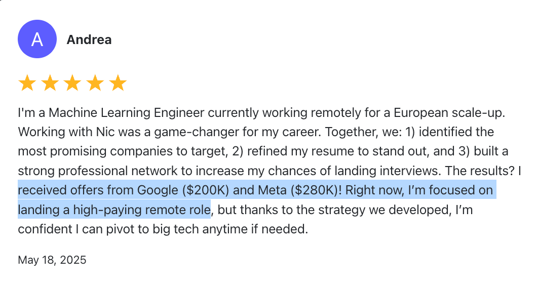 Work 1:1 with me (Nicola Amadio, author of this newsletter), and join the other engineers who were able to 2x/3x they pay and freedom in the past few months!