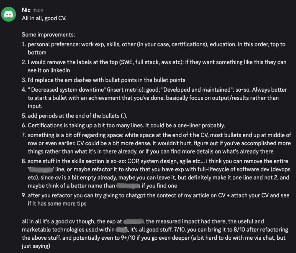 Can’t guarantee I’ll keep doing them forever, but for now it’s feasible to do it every now and then. Anyway, you’ll still be able to check the past reviews on the other people’s CVs once you join.