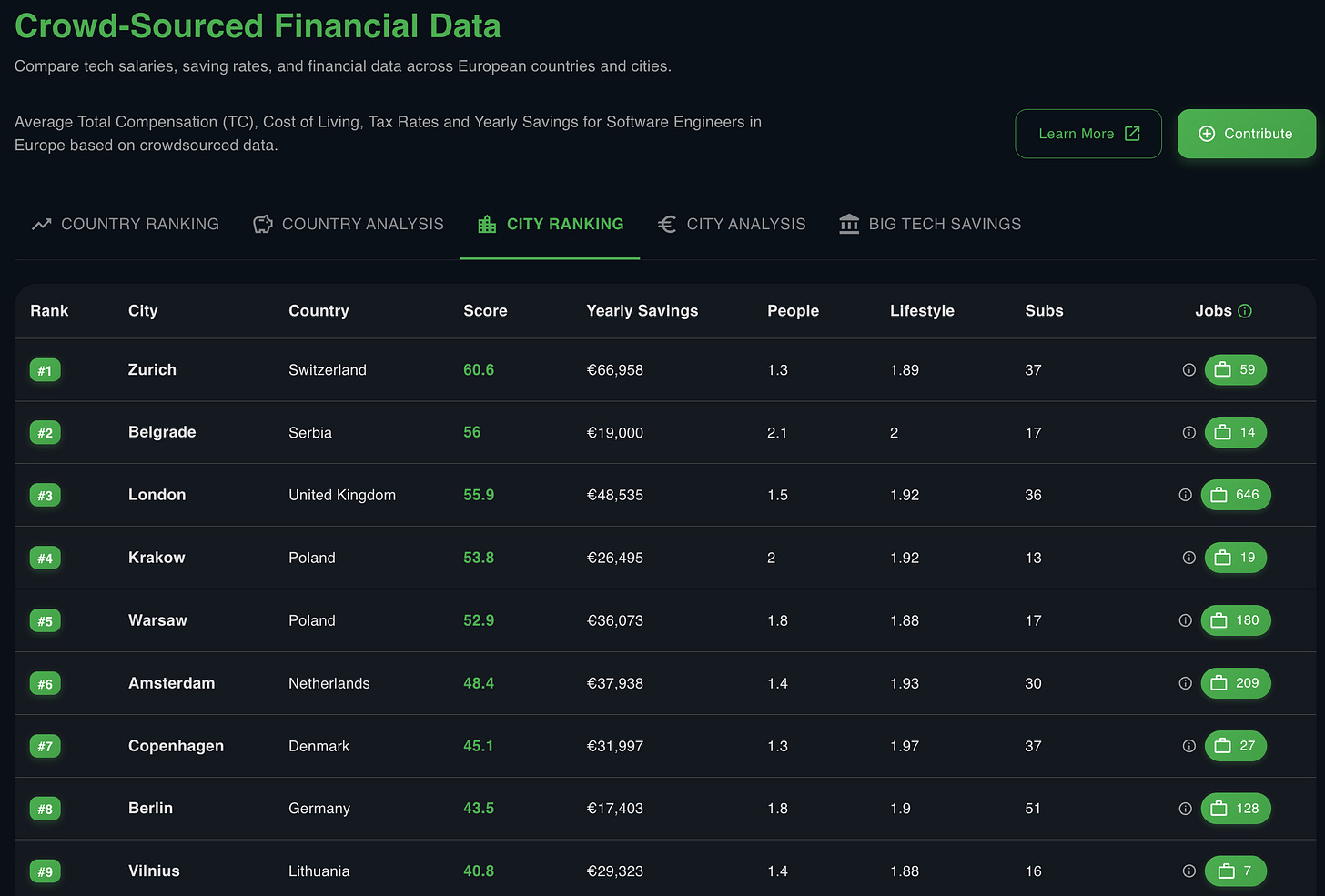 Euro Top Tech - #4 (Best Cities in Europe for Tech Workers Update)