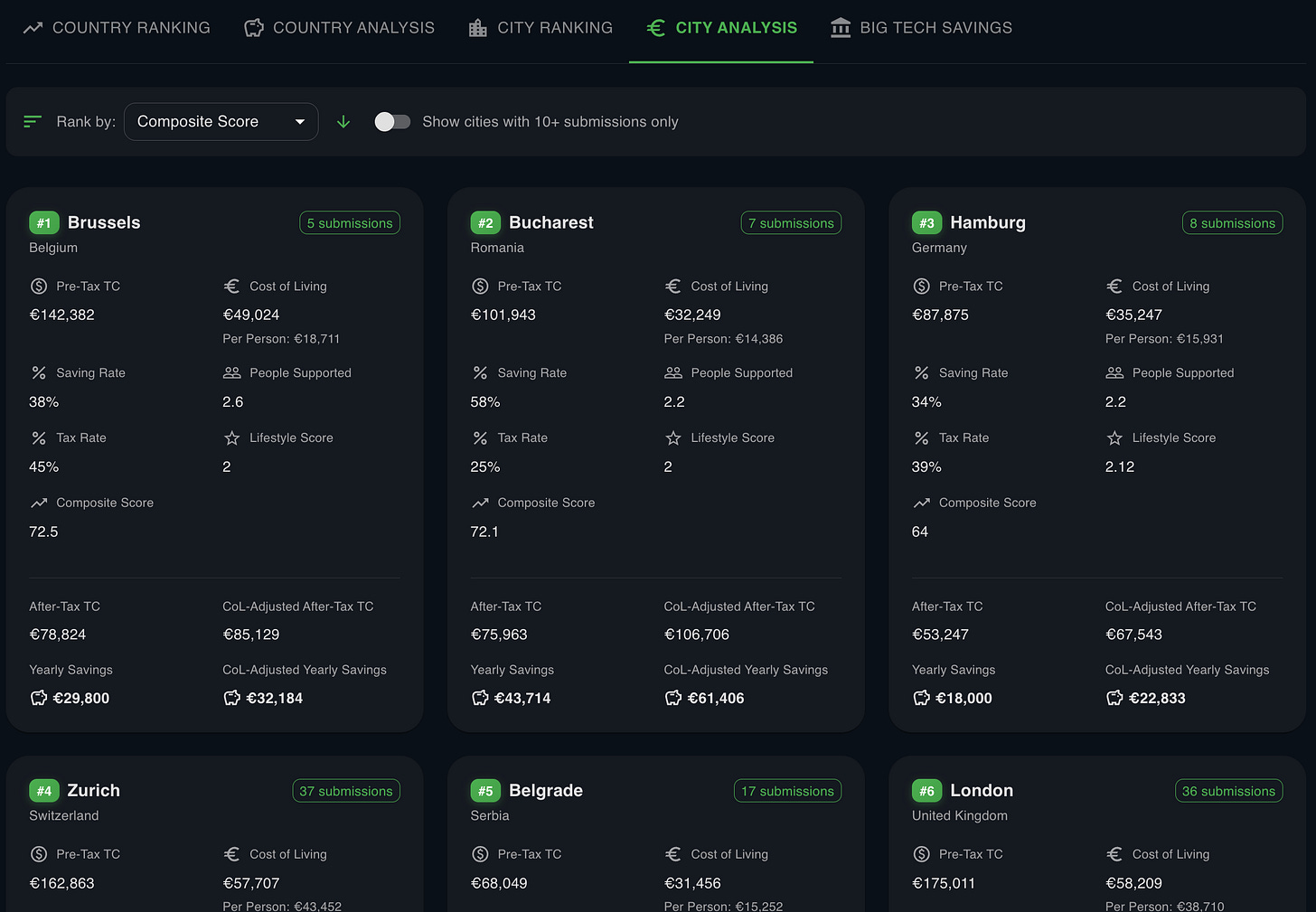 Brussels 🇧🇪, Bucharest 🇷🇴 and Hamburg 🇩🇪 leading the top 3.