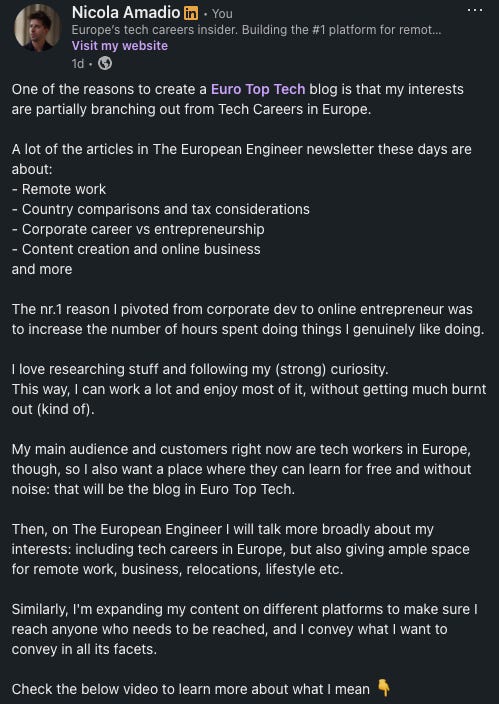 Work 1:1 with me (Nicola Amadio, author of this newsletter), and join the other engineers who were able to 2x/3x they pay and freedom in the past few months!