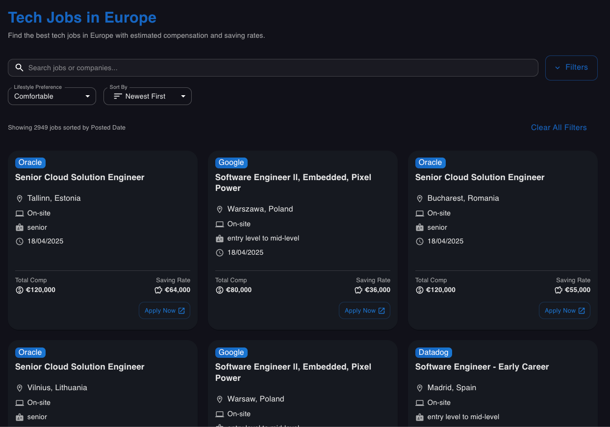 3000/4000+ carefully selected high-paying jobs for tech workers in Europe (onsite/remote/big tech/startups etc), updated daily