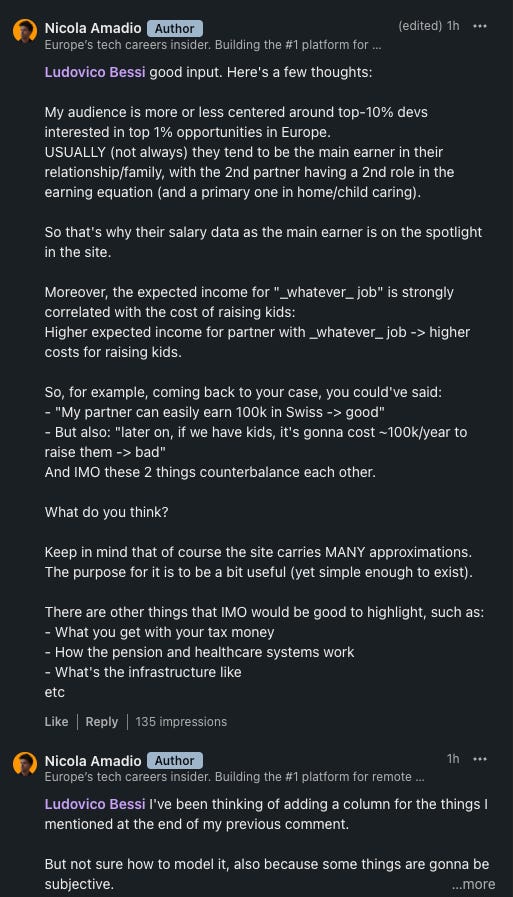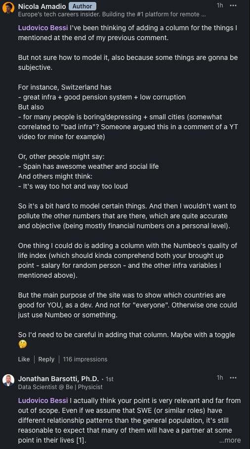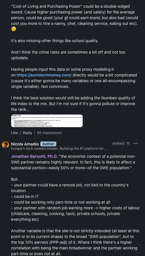 I don’t want to “denature” the concept of the site, and that’s why I’m not sure about adding other metrics regarding “quality of life” variables.