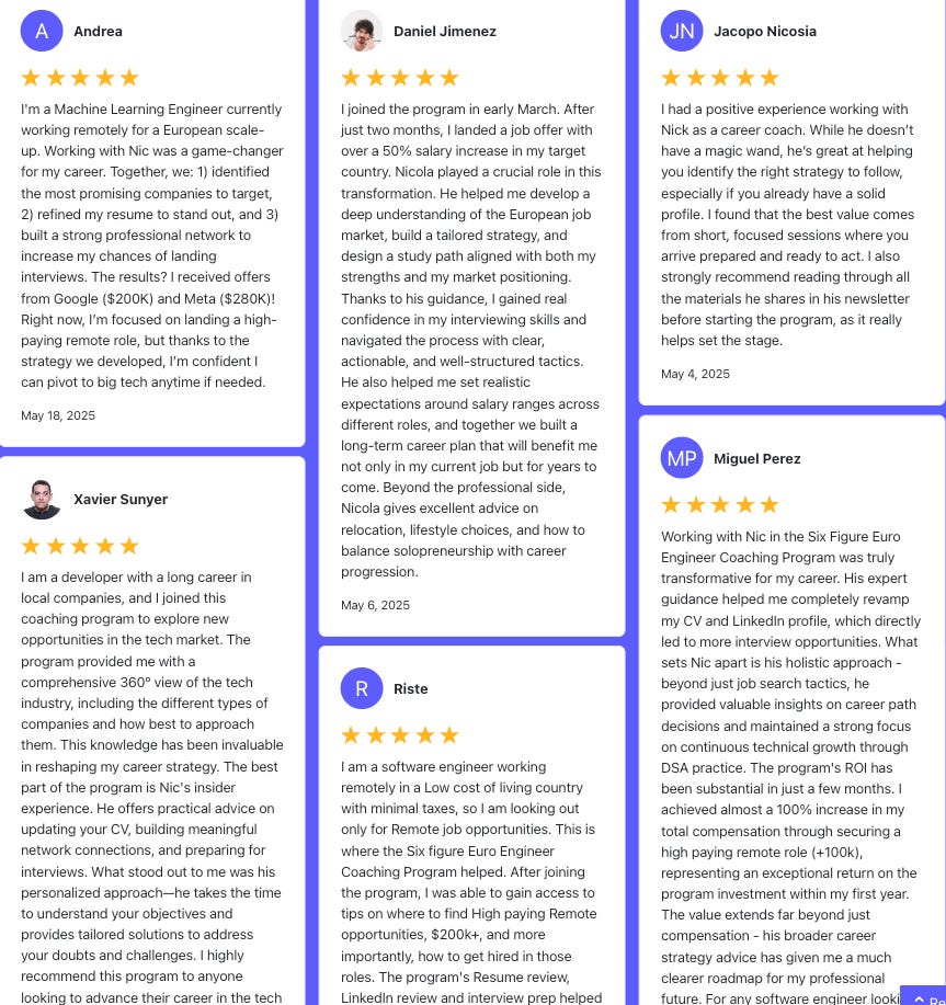 Work 1:1 with me (Nicola Amadio, author of this newsletter), and join the other engineers who were able to 10x their tech career in the past few months!