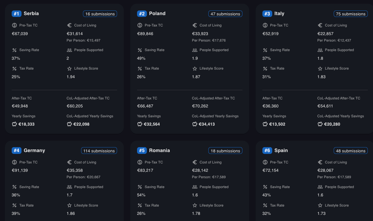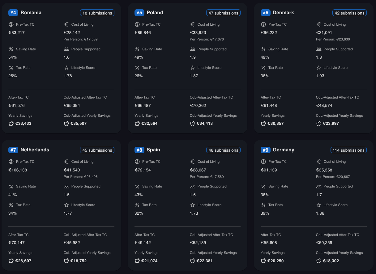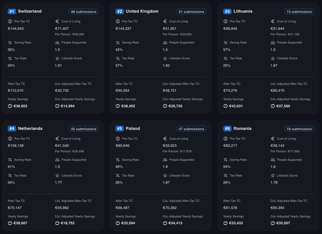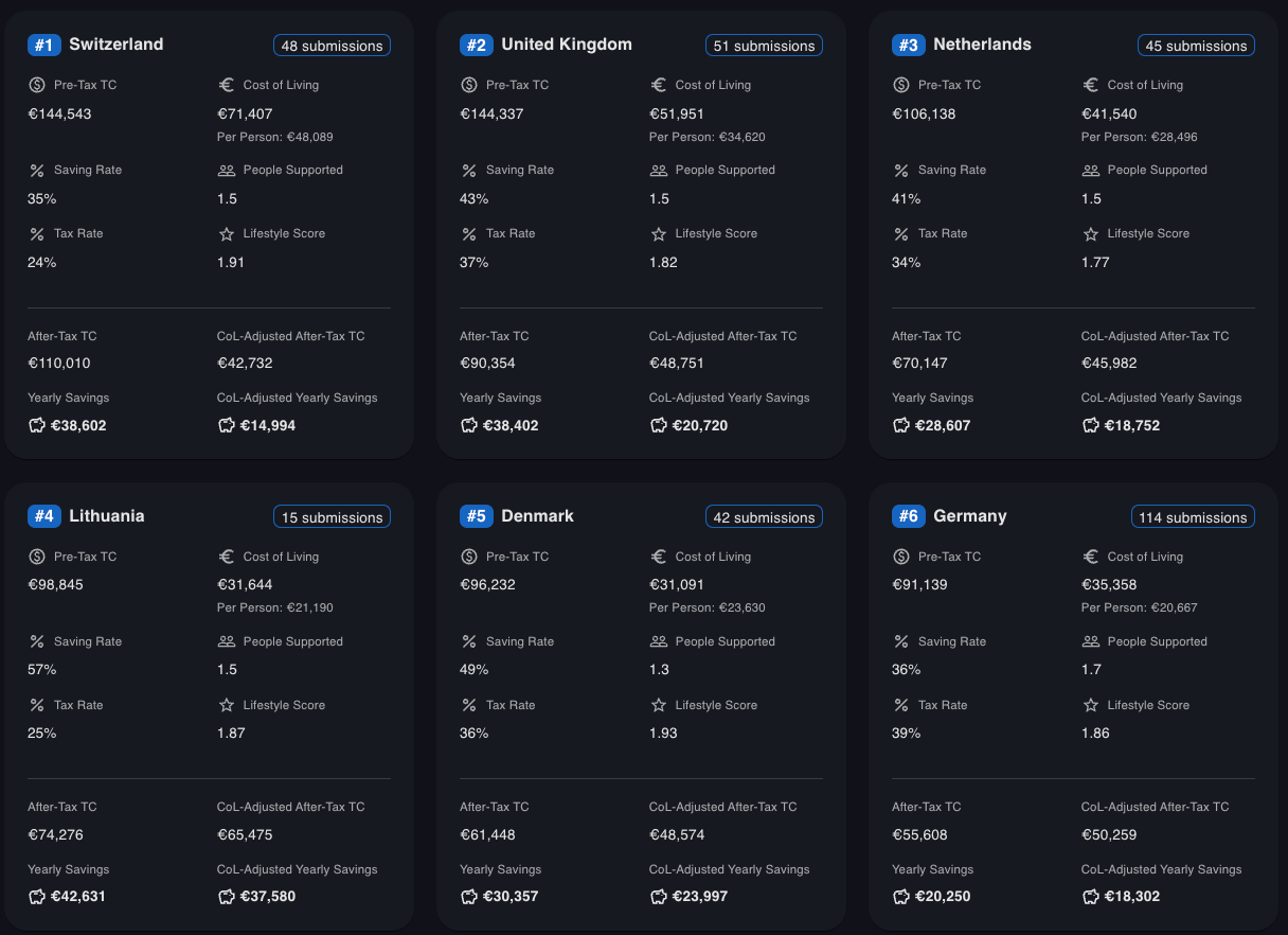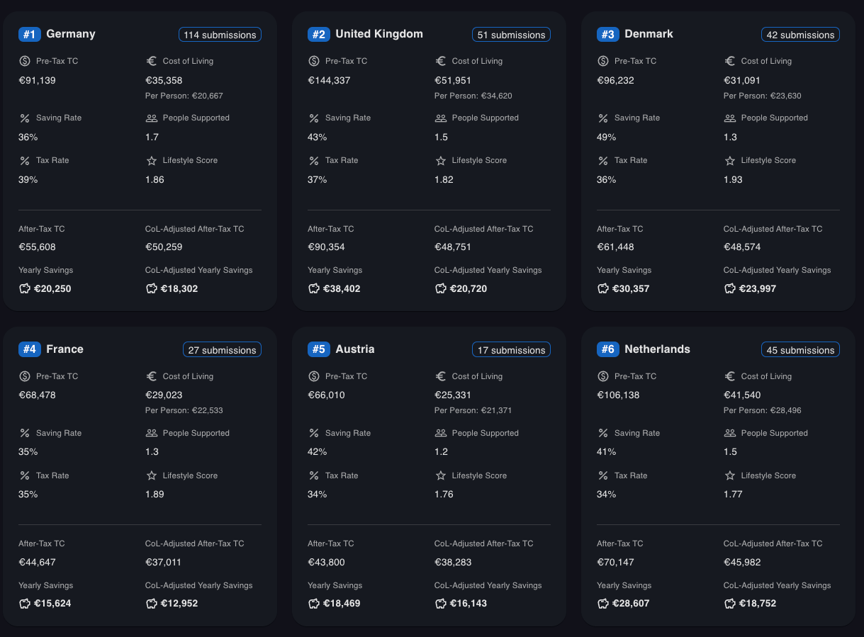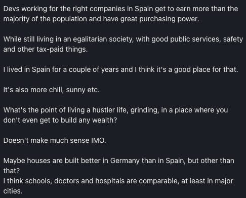 It’s safe to say though, that for the audience of this newsletter (engineers targeting the top 10% of the market in Europe), the two countries at this point offer similar TC ranges.