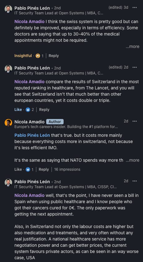 Check this thread about healthcare in Switzerland (link to linkedin):