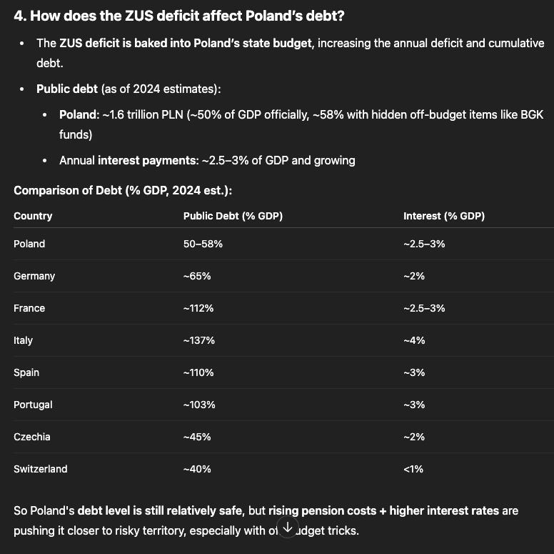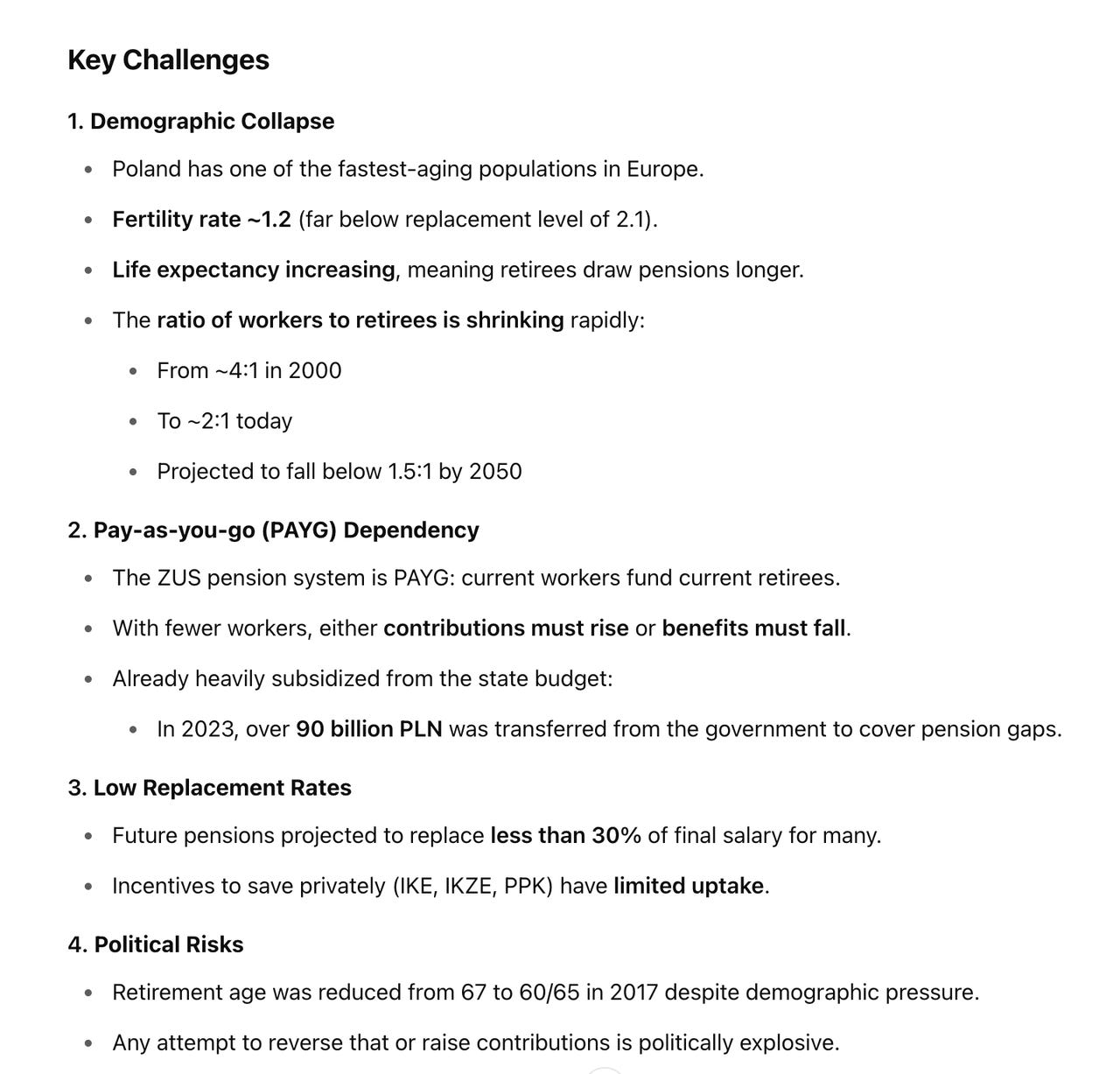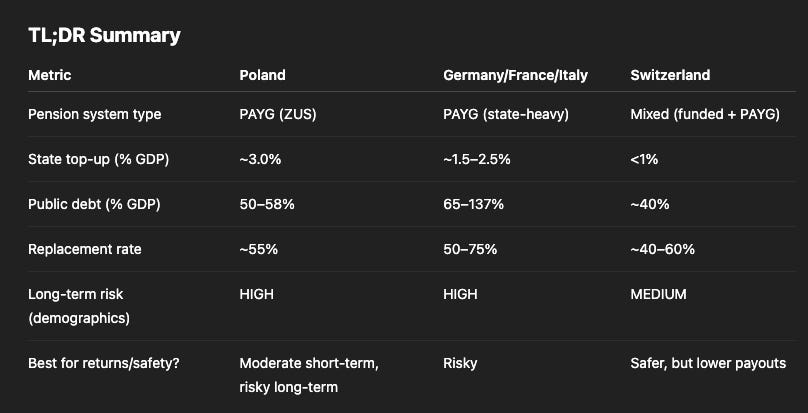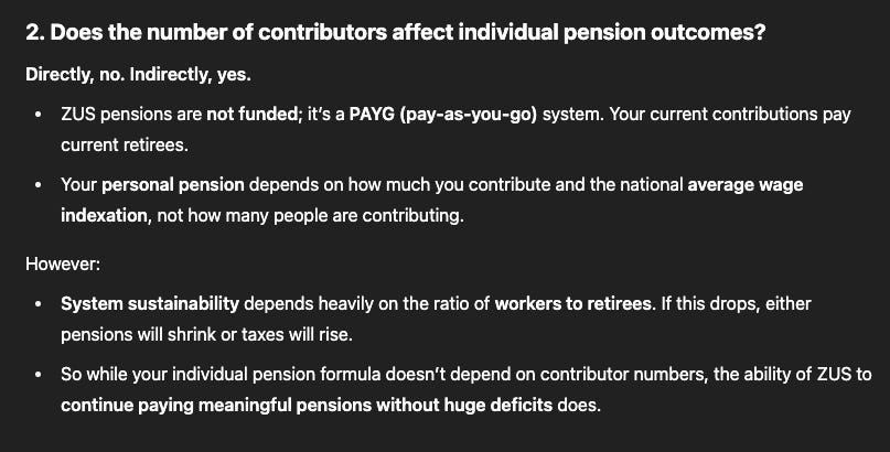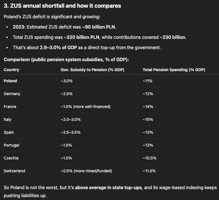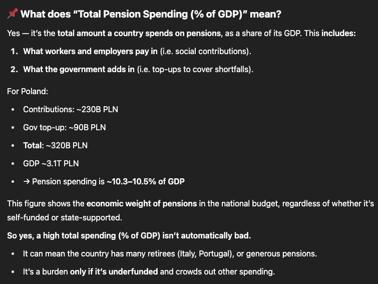 Basically, countries in Western and Southern Europe TODAY have worse pension systems than Poland, and they’ll likely get worse at a worse rate than Poland’s pension system will get worse.