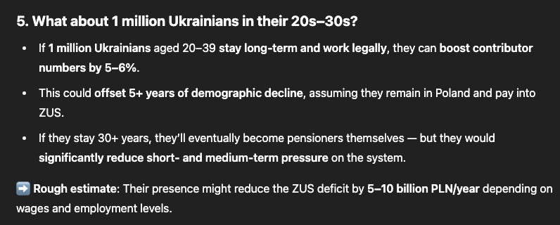I said how this will be IMO counter-balanced by a growing economy (attractive to skilled migrants in working age) + over 1M of young Ukrainians who moved to the country after the war.