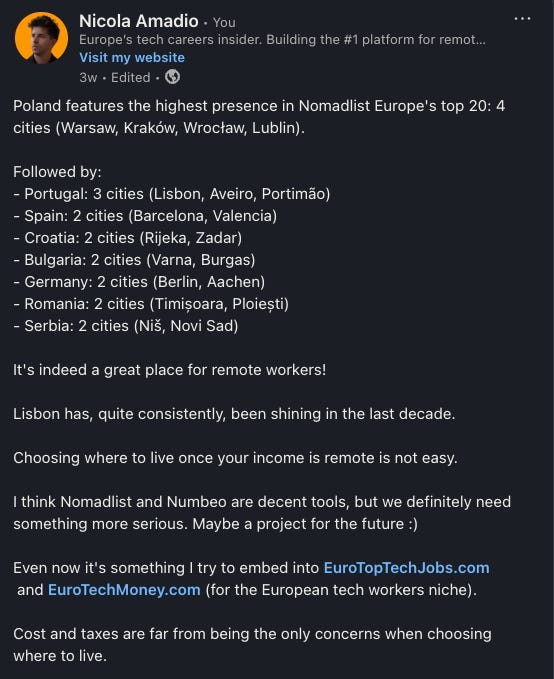 The idea is that this article could be an input on some country ideas that I’ve personally researched and that I’ve found interesting. You can take a look at the ones here that you find interesting and let me know what else you find :)